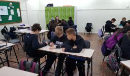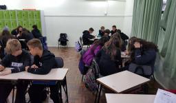 Na sequência, seguindo o modelo de sala de aula invertida, os estudantes receberam um material através do Google Classroom para lerem e aprofundarem o assunto como tarefa de casa.
