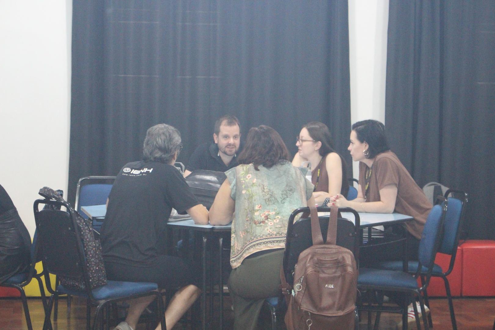 De forma criativa, os professores, organizados em grupos, apresentaram uma sinopse de filme para contar os principais acontecimentos, vivências e atividades desenvolvidas ao longo de 2025. A dinâmica estimulou a troca de ideias, o olhar colaborativo e o reconhecimento das construções realizadas durante o ano.