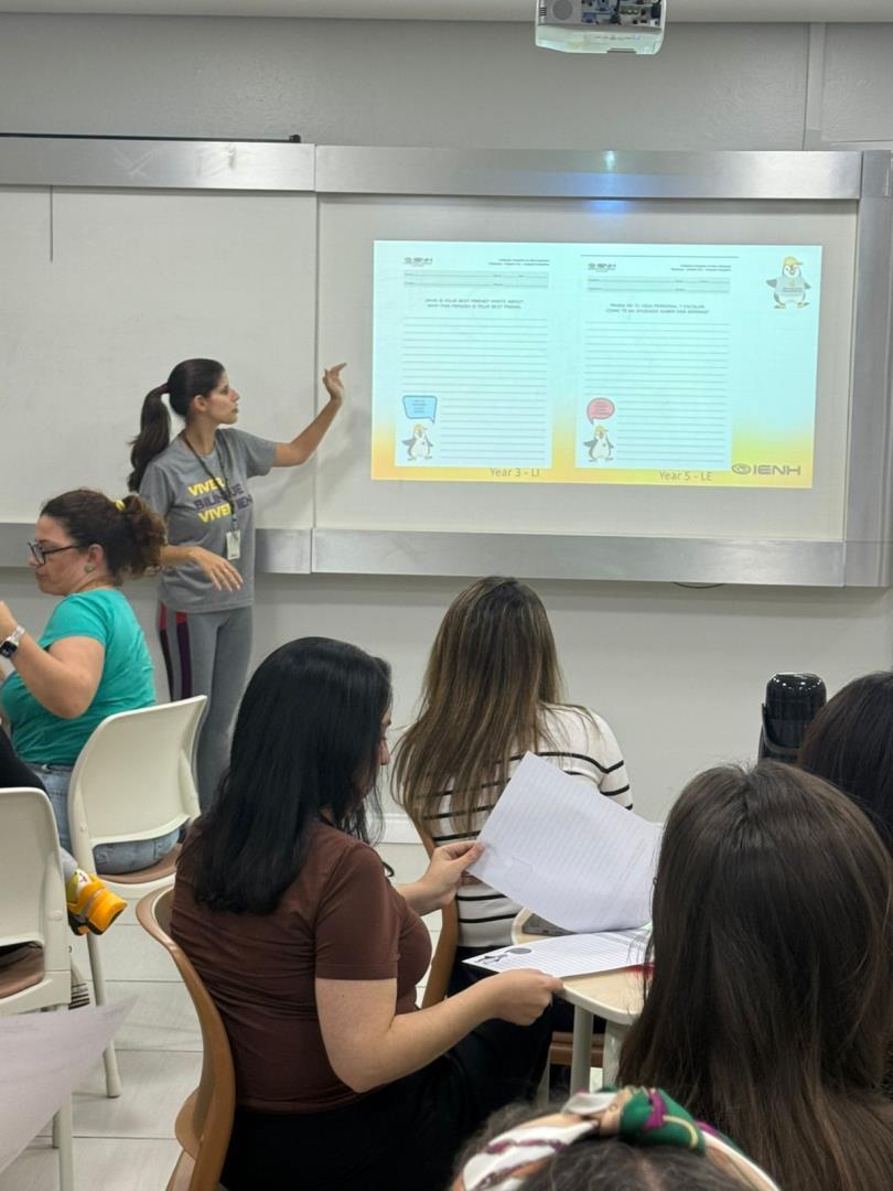 Os professores do Ensino Fundamental do Currículo Internacional Bilíngue da IENH participaram de um momento de formação dedicado à avaliação da escrita dos estudantes do Year 1 ao Year 5, no dia 20 de outubro. O encontro, que foi na Unidade Oswaldo Cruz, reuniu docentes das Unidades Pindorama e Oswaldo Cruz e teve como objetivo apresentar e alinhar a nova proposta institucional de acompanhamento da escrita.