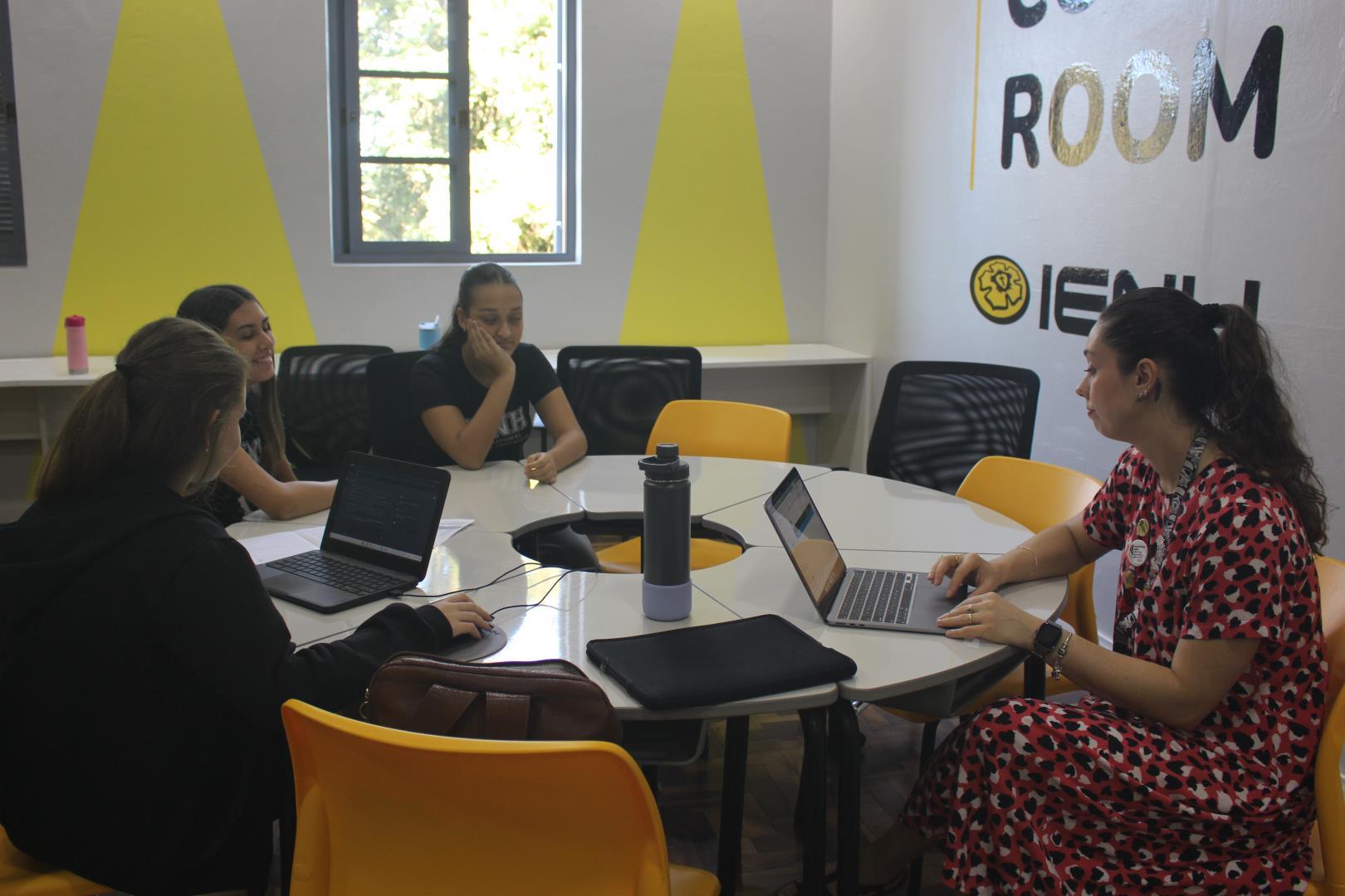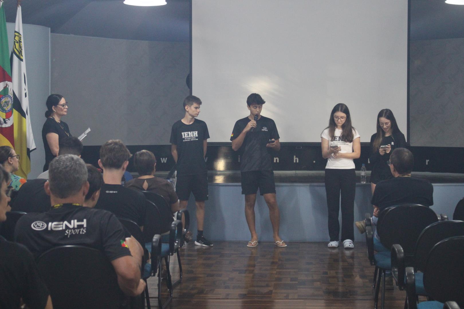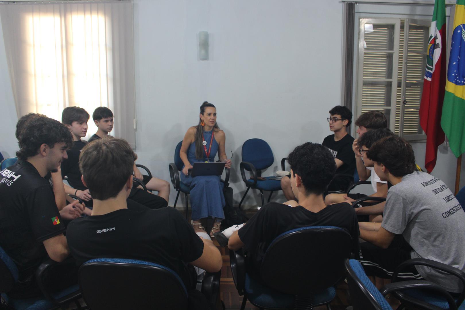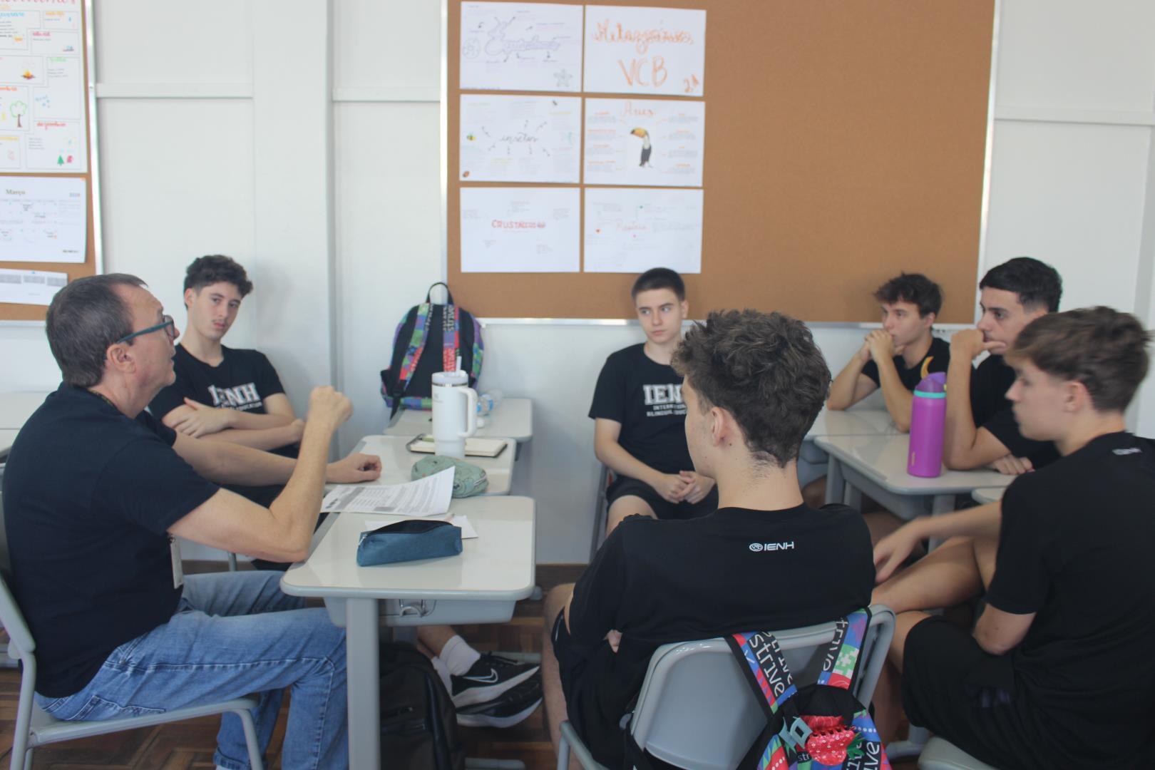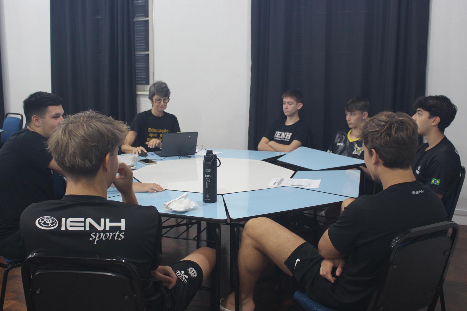 Na sequência, os professores orientadores se reuniram com os grupos para alinhar e revisar o planejamento que será desenvolvido ao longo dos próximos meses. Os estudantes também participaram de uma reunião on-line com representantes das instituições parceiras da IENH, fortalecendo o vínculo entre escola e comunidade.