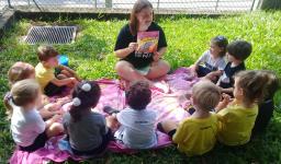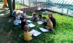 Durante a tarde de sexta-feira, 29 de março, a turma do Nível 2B da Educação Infantil Bilíngue da IENH – Unidade Pindorama vivenciou um momento de hora do conto especial no pátio Florestinha.