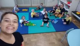 De forma dinâmica, a Professora – Ana Cristina Weber foi narrando a história “Qual é a cor do amor? ”, enquanto imagens referentes ao texto foram colocadas em um varal. Após a contação, as crianças registraram em uma folha, com uso de canetinhas, suas cores favoritas e, no ambiente de aprendizagem, relacionaram as mesmas com objetos por meio de uma brincadeira.
