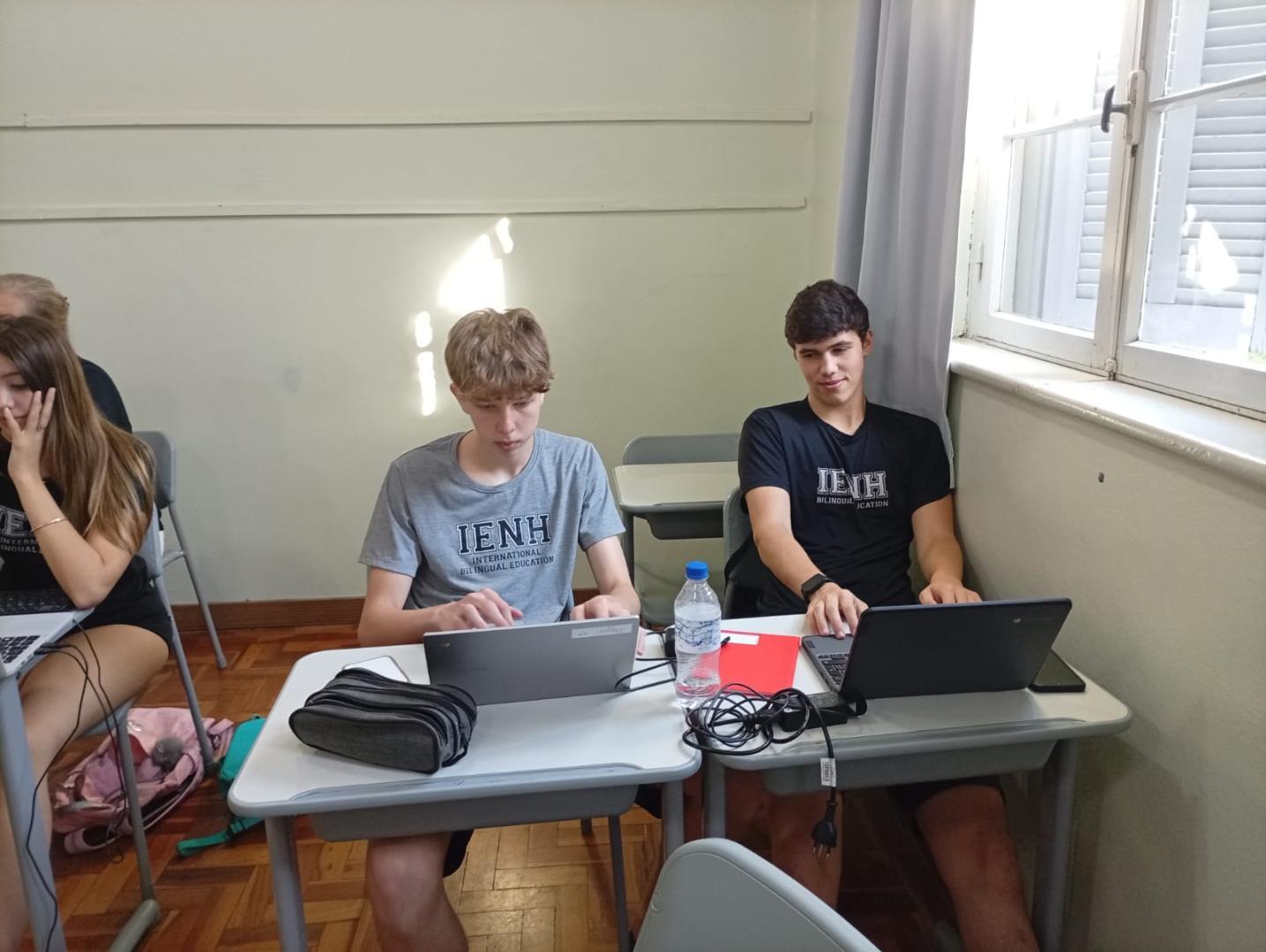 No dia 28 de março, estudantes das turmas de Year 6 e 8 do Ensino Fundamental do Currículo Internacional Bilíngue da IENH – Unidade Fundação Evangélica, junto às 1ªs séries do Ensino Médio (Upper Secondary), participaram do primeiro sábado letivo dedicado às orientações para a Banca de Iniciação Científica, prevista para o mês de maio.