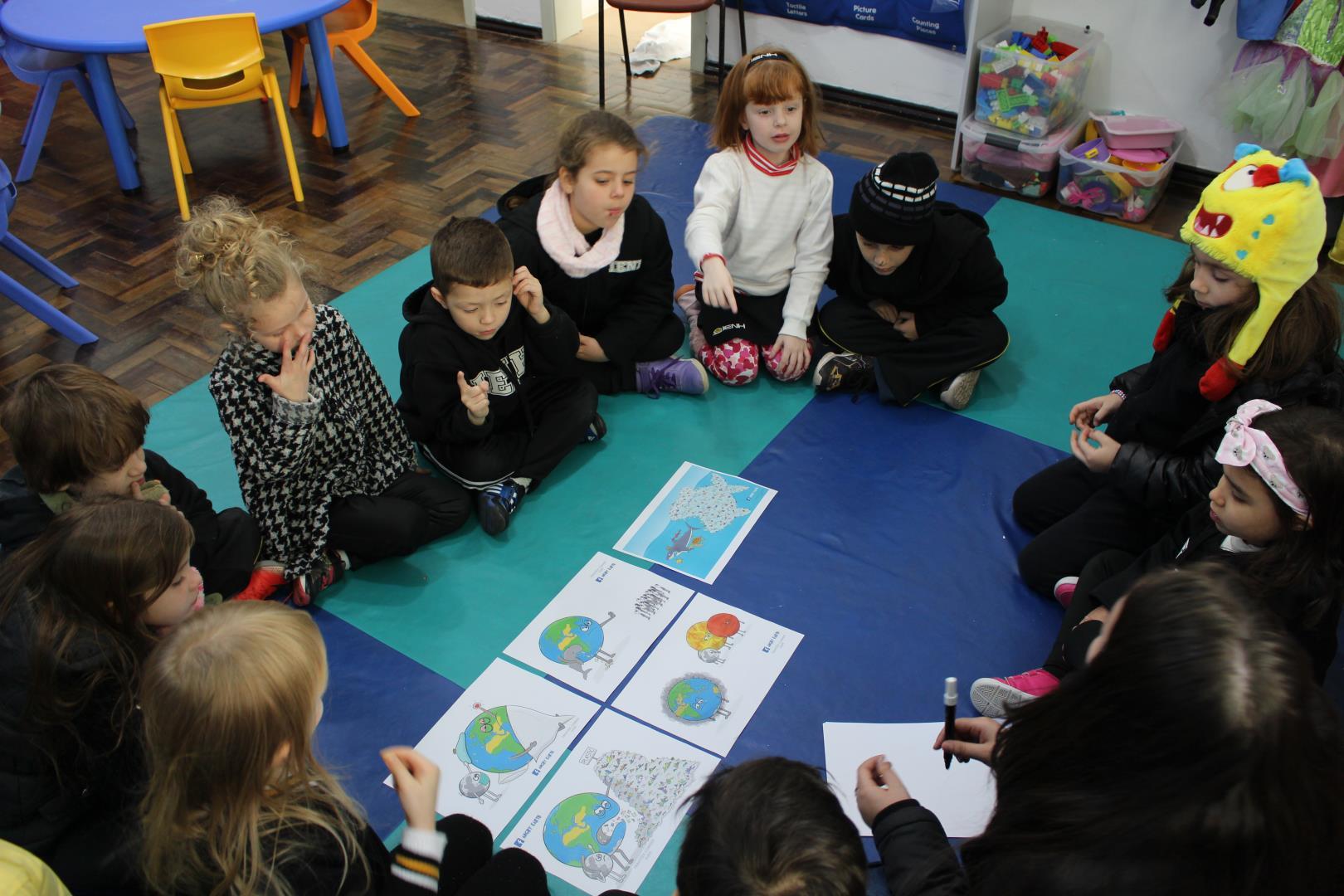 Durante a tarde de sexta-feira, 05 de junho, as crianças do Nível 5A da Educação Infantil Bilíngue da IENH – Unidade Oswaldo Cruz realizaram uma rodinha para conversar sobre a “saúde do planeta”. Na ocasião, imagens ilustraram as reações da Terra com as atitudes dos seres humanos e o lixo na natureza.
