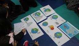 Encerrando a atividade, foi proposto aos alunos que desenhassem em uma folha como é o mundo que desejam. Para a tarefa, as crianças puderam utilizar tinta aquarela e nanquim.