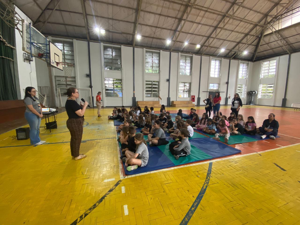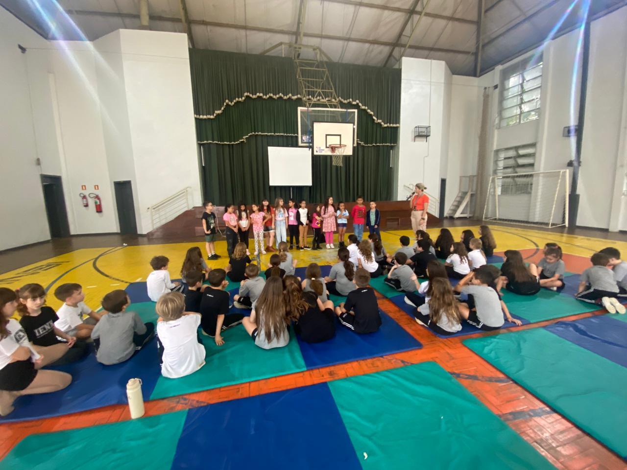 Durante a atividade, os monitores ecológicos convidaram os alunos do 2º ano da Escola Municipal José Grimberg para uma rica troca de conhecimentos e experiências, ampliando o olhar sobre a importância do cuidado com o meio ambiente desde a infância.