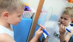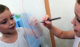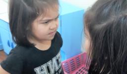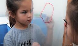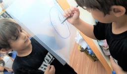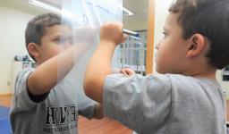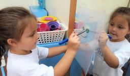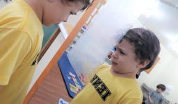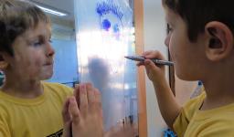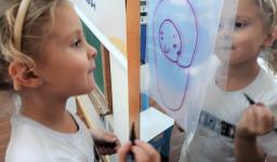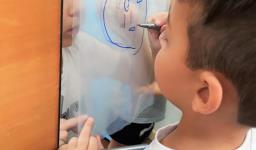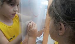 Em outro momento, as crianças registraram em uma folha, no espelho, o seu rosto com o semblante escolhido e relataram algo que os fazia sentir dessa forma. Com a tarefa, as turmas identificaram diferentes sentimentos que fazem parte do dia a dia, reconhecendo, por meio do rosto e corpo, como os colegas estão se sentindo e o que podem fazer com essas emoções.