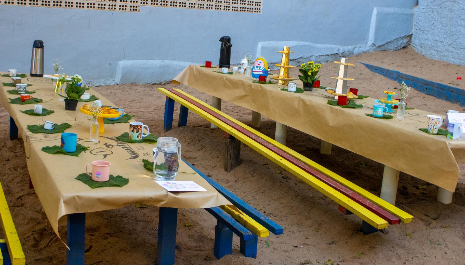 Na sequência, as crianças participaram das Literary Stations: Art & Characters Studio. Depois, vivenciaram o Alice’s Tea Party, um momento coletivo com chá e lanche. Ao longo da programação, também tiveram o Free Play Time, um tempo livre para brincar e interagir com os colegas.