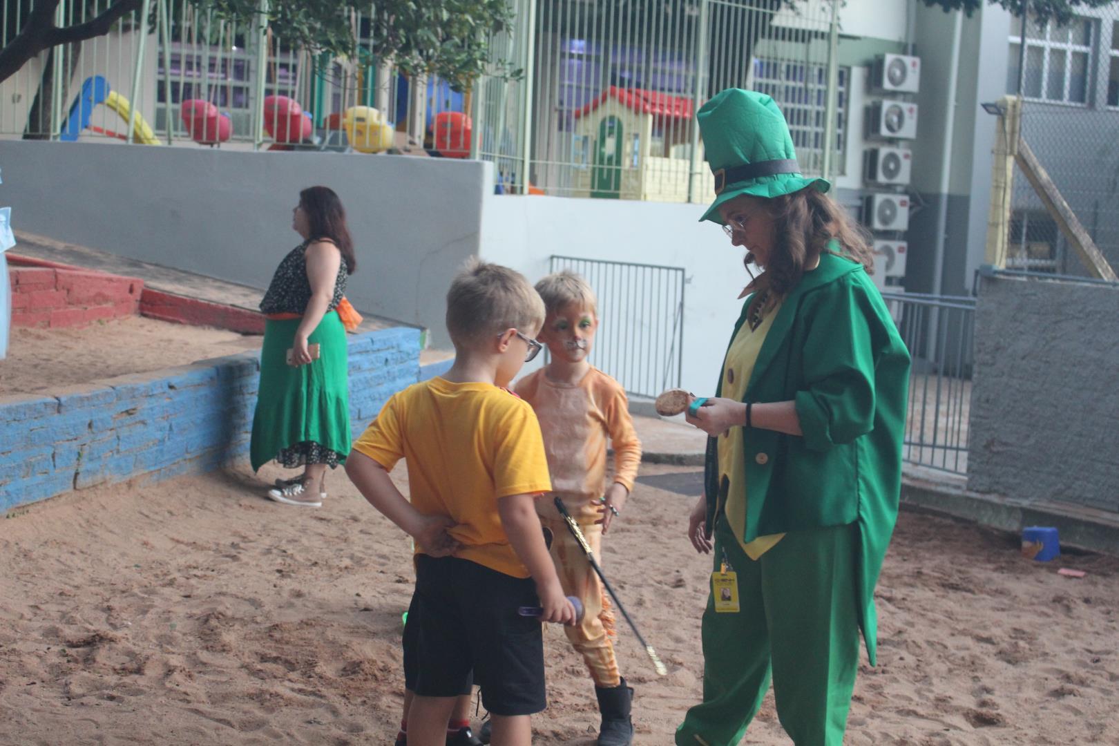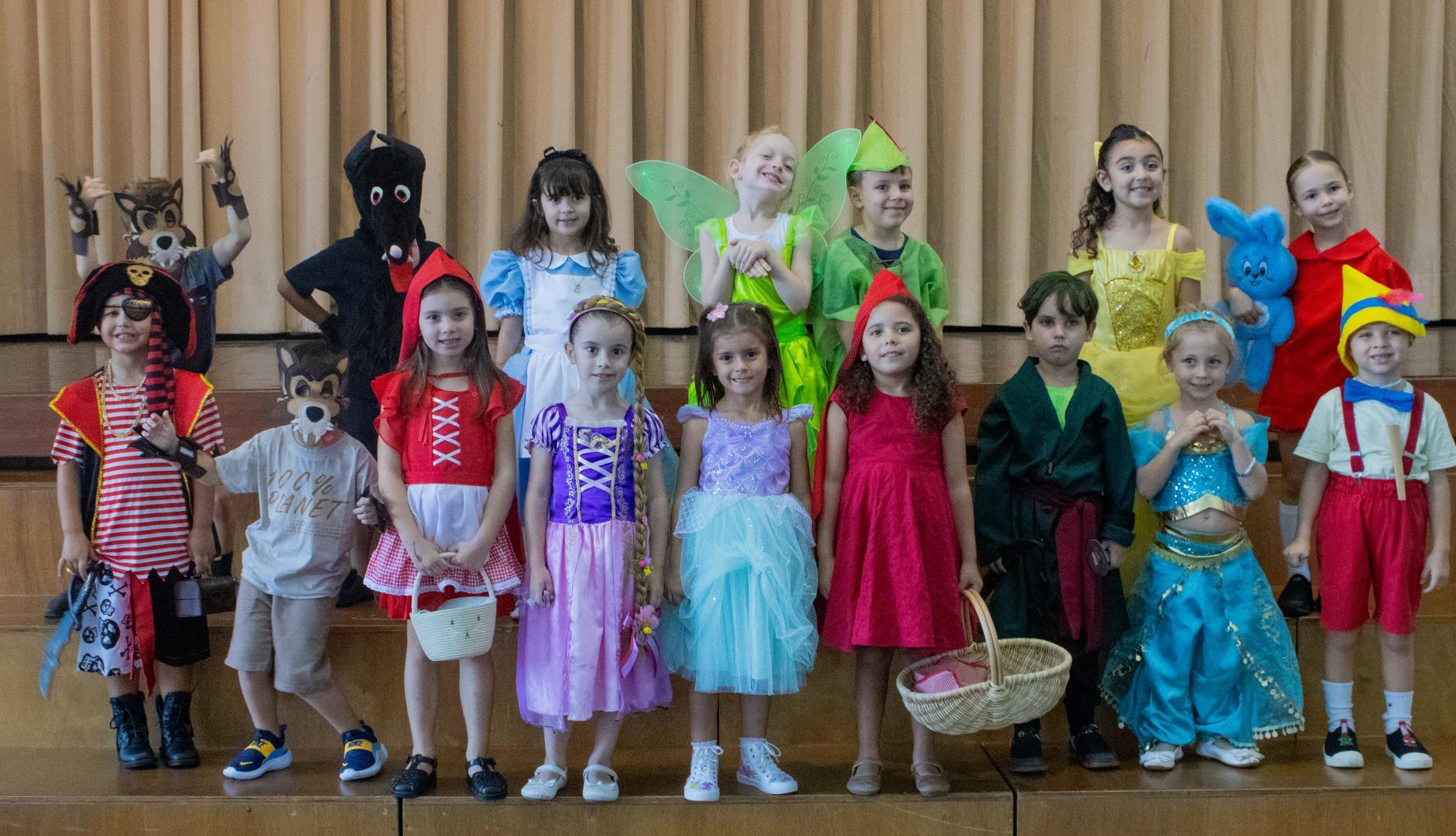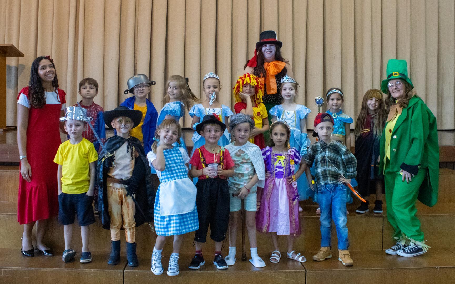 As atividades iniciaram às 15h, com a chegada na rotatória e um desfile de fantasias de personagens literários, promovendo a interação oral em inglês, além de momentos de expressão, identidade e conexão com o universo das histórias.