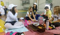 Após o piquenique saudável, ocorreram brincadeiras em grupo como: Cookie monster e Blind man’s bluff. Os estudantes desvendaram um criptograma para realizarem uma caça ao tesouro (Treasure Hunt), em que receberam adesivos alusivos ao dia e um álbum de figurinhas sobre alimentação saudável e alimentação não saudável (Healthy/ Unhealthy Food), com algumas figurinhas. Conforme a Teacher Kelly, outras figurinhas serão entregues no decorrer da semana para troca-troca na escola. Ao final da programação, as turmas também ganharam maçãs para degustar.