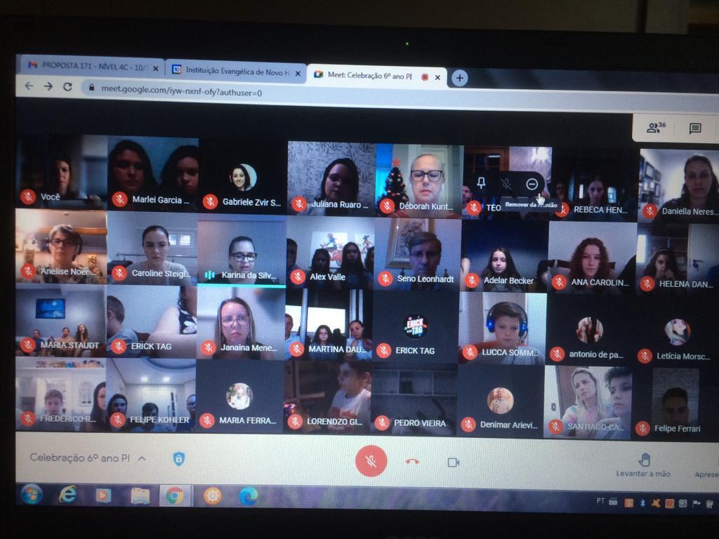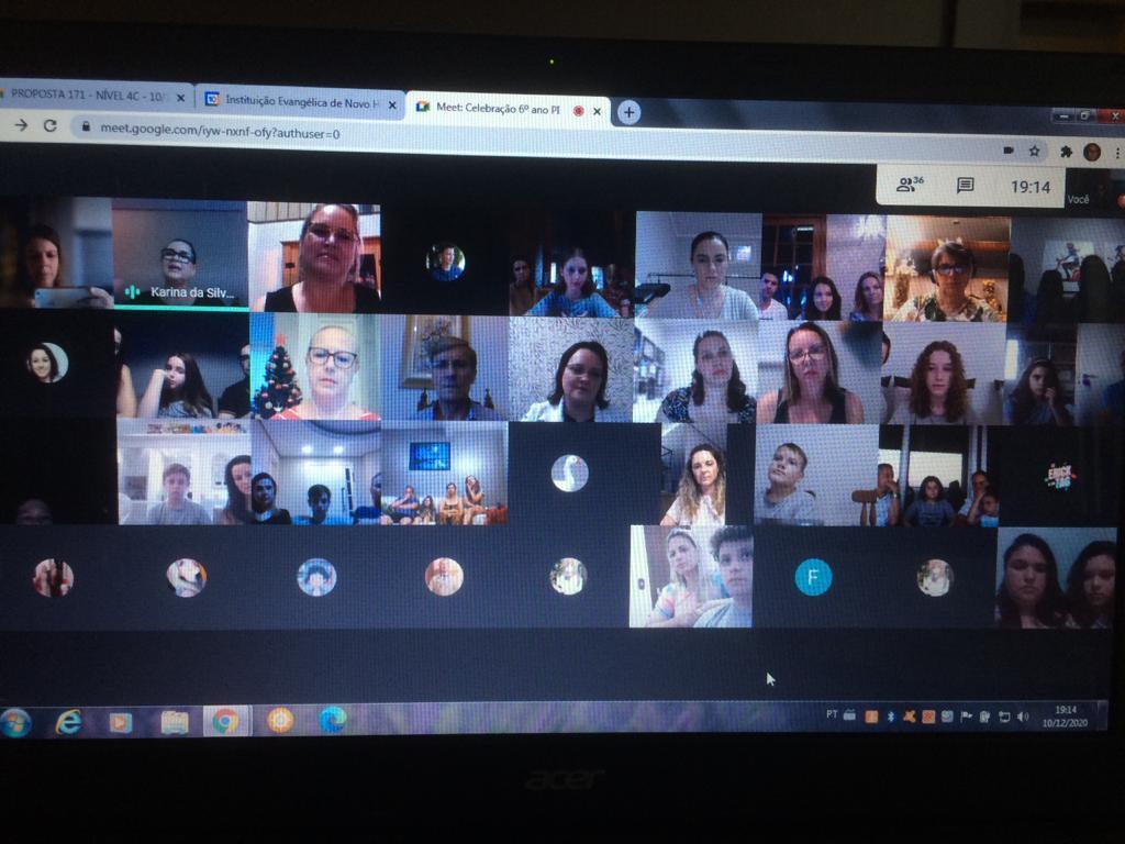 Com a presença dos familiares, os alunos do 6° ano do Ensino Fundamental Bilíngue da IENH – Unidade Pindorama participaram de uma celebração on-line em homenagem ao último ano nesta escola. No encontro, realizado dia 10 de dezembro, também participaram o Núcleo Pedagógico e professoras conselheiras da turma.