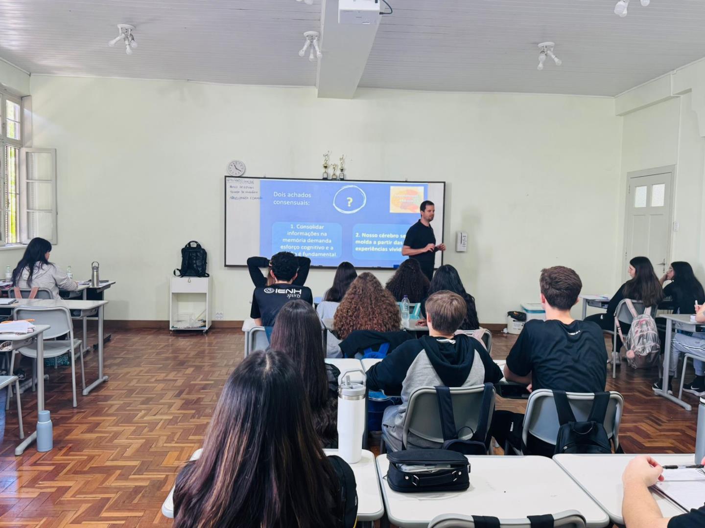 A proposta, idealizada pela coordenadora Pedagógica Jaqueline Schaeffer, em parceria com os professores de Física, Matheus Lehnen e Rômulo de Souza, teve como foco ajudar os estudantes a compreender como o cérebro aprende e como desenvolver autonomia e foco nos estudos.