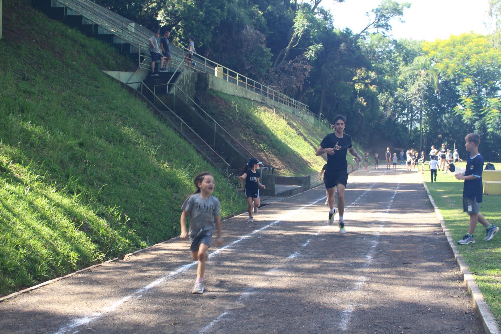 Após as vivências esportivas, os estudantes fizeram um lanche na Cantina e, em seguida, aproveitaram um momento de brincadeiras livres na pracinha. Lá, puderam jogar futebol, brincar de pega-pega e se envolver em atividades espontâneas, fortalecendo vínculos e explorando diferentes formas de movimento.