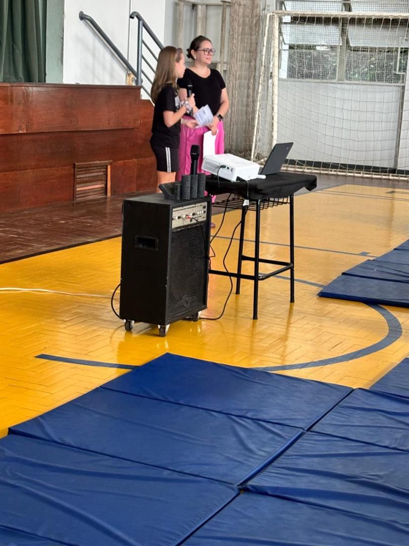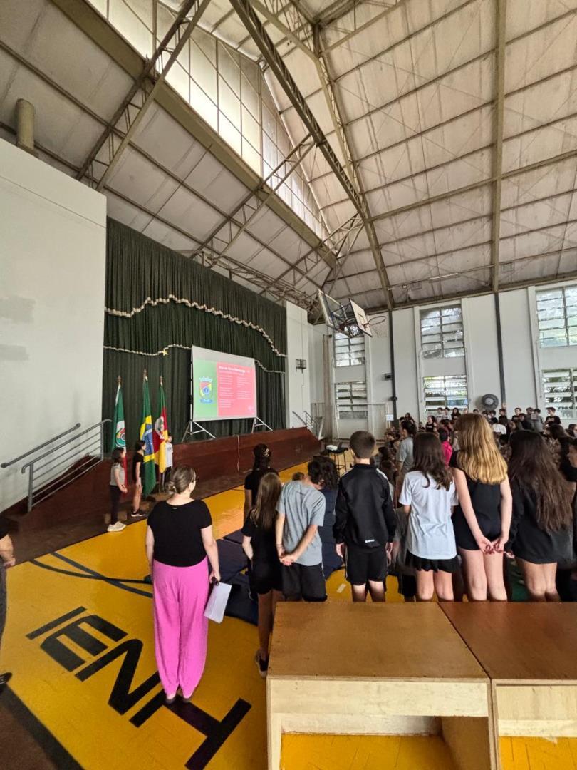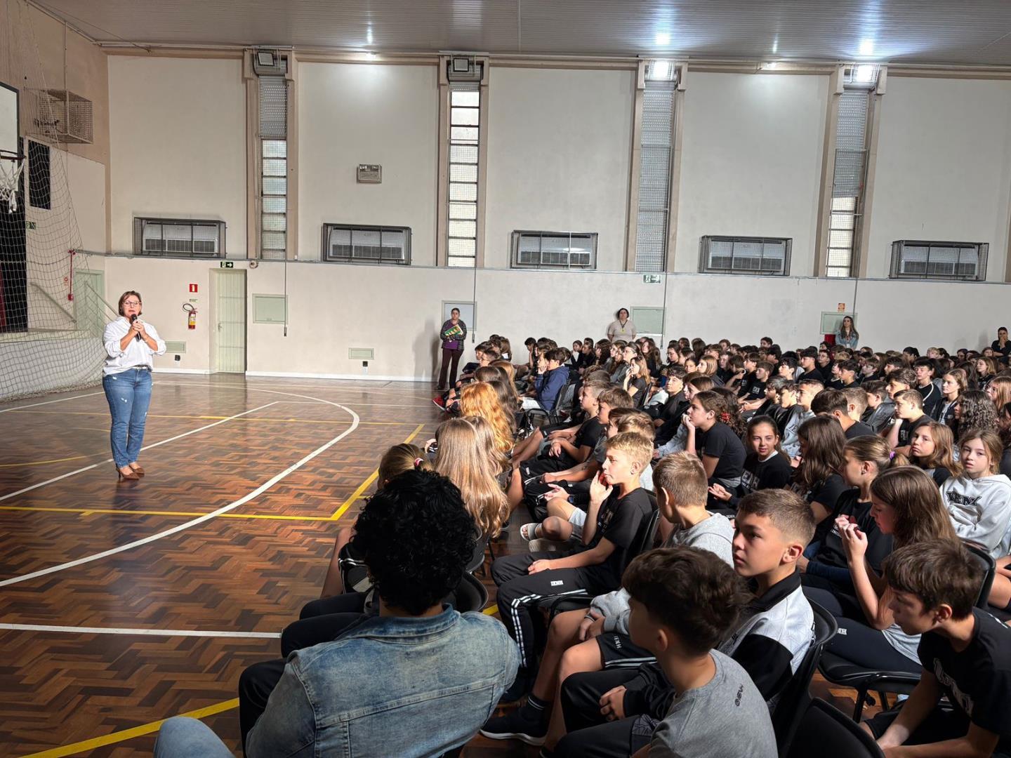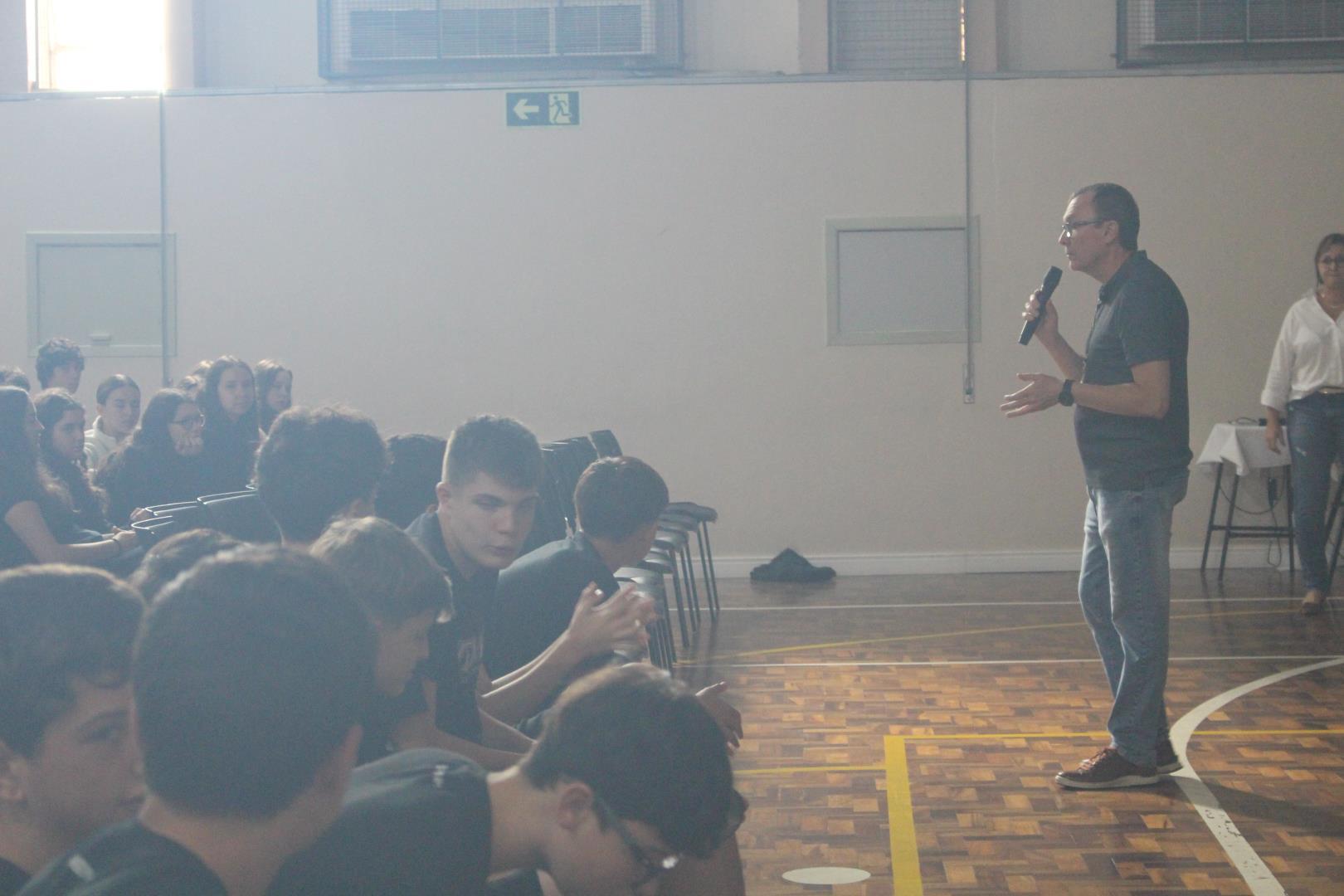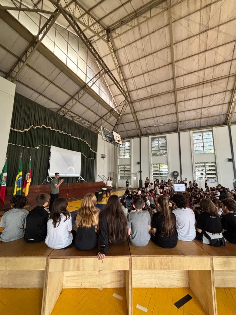 Já na Unidade Fundação Evangélica, a diretora administrativa da Secretaria de Cultura e Turismo de Novo Hamburgo, Amanda Becker, participou da programação com dois momentos no ginásio, voltados aos estudantes do Ensino Fundamental e do Ensino Médio. Durante os encontros, ela compartilhou informações e curiosidades sobre a cidade, destacando o número de praças e as ações desenvolvidas pela Casa das Artes de Novo Hamburgo para a comunidade. Ela também valorizou o museu Dalila Clementina Sperb, personagem histórica relevante na história da IENH, que receberá o acervo do artista Carlão.