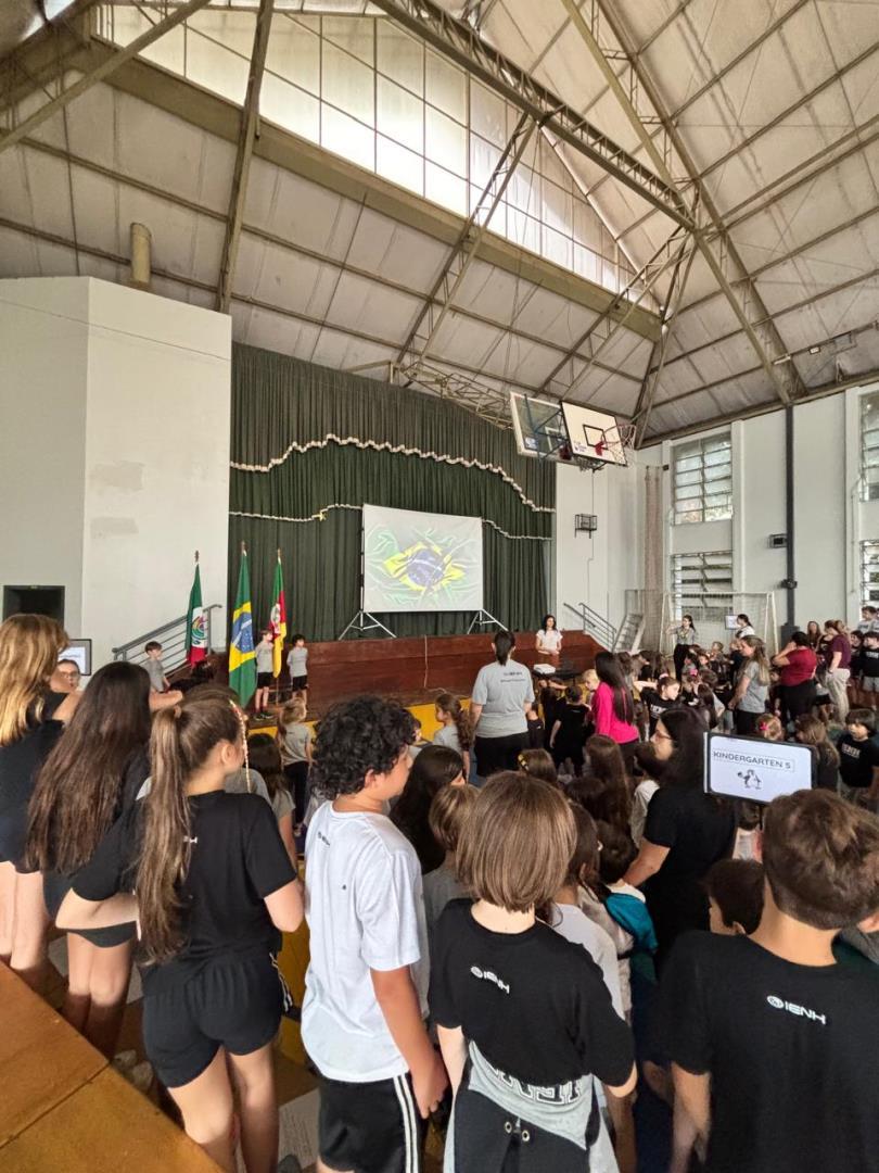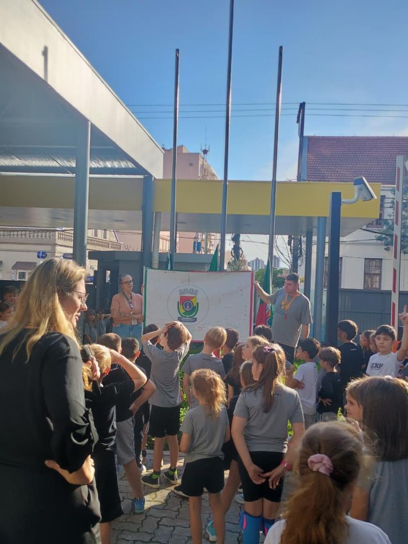Na Unidade Pindorama, os estudantes desenvolveram uma linha do tempo sobre a história do município e, em grupos, criaram cenários para a produção de um stop motion, com orientação do professor Cleiton Alberto Backes. A programação também incluiu o hasteamento das bandeiras e a execução dos hinos do Brasil e de Novo Hamburgo.