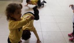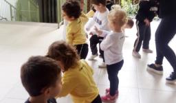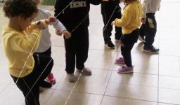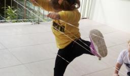 A Teacher Cláudia Felix contou a história em inglês para os alunos, que escutaram a canção, cantaram e dançaram. Em seguida, foram convidados a brincar de “Web Spider”. Inicialmente, cada aluno passava sozinho pela teia, e quando chegava do outro lado, recebia um desenho de spider (aranha) na mão. Na segunda parte da brincadeira, todos os alunos deviam passar ao mesmo tempo.