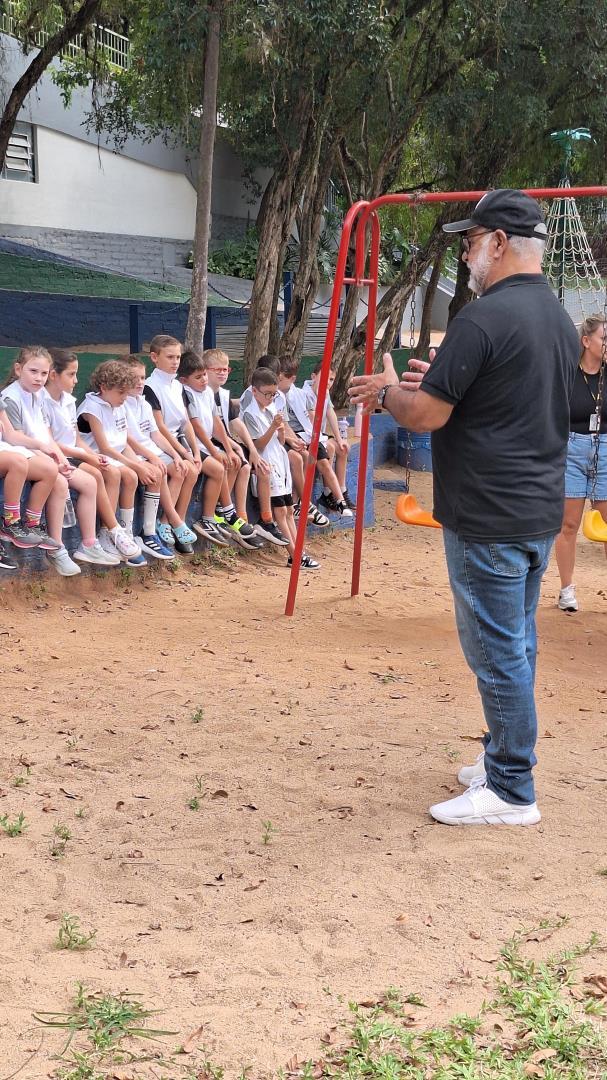 A vivência foi conduzida pelas professoras Daiane Kochenborger e Vanessa Bueno e contou com a participação dos Eco Friends (Monitores Ecológicos) e do consultor Ambiental, professor Ubiraci Pottes de Mello que compartilhou seus conhecimentos de forma acessível e lúdica. Ao longo do encontro, ele explicou que o solo funciona como a “casa” das plantas e, por isso, precisa estar equilibrado para garantir seu desenvolvimento.