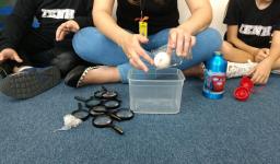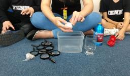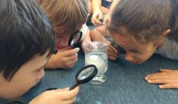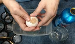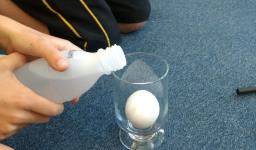 Durante toda a semana, os estudantes observaram a experimentação com lupas e realizaram o registro em folha de acompanhamento. Ao final do quarto dia, o ovo foi retirado do vinagre e, segundo a Professora Gabriella, os alunos observaram a mágica que ocorreu: o ovo ficou transparente.