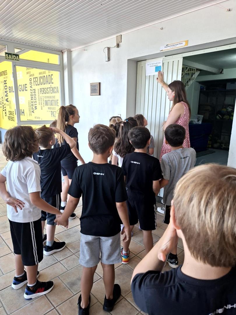 Inicialmente, os estudantes participaram de jogos em inglês sobre os diferentes locais da escola, revisando e aprendendo os nomes desses espaços que fazem parte do seu dia a dia. Depois das brincadeiras, receberam um novo desafio: participar de uma Treasure Hunt (caça ao tesouro) para encontrar um material especial que simboliza um marco do primeiro ano e da entrada no Ensino Fundamental.