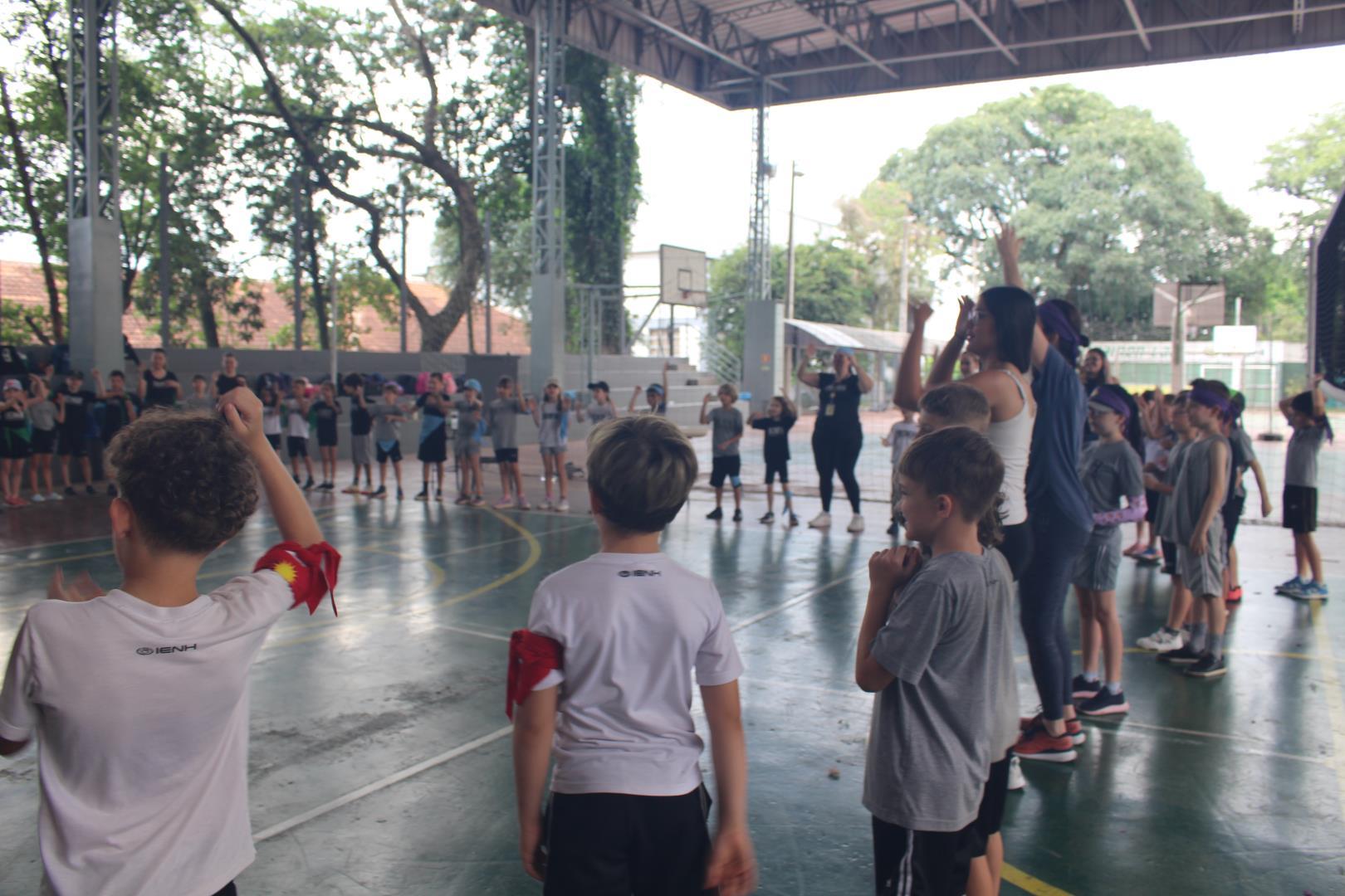 As turmas utilizaram as quadras cobertas e o campão para participar de uma gincana com atividades esportivas típicas de países de língua inglesa, ao mesmo tempo que praticavam o idioma. Na gincana, eles foram divididos em grupos, identificados por cores e, além disso, contaram com a ajuda dos estudantes do 3rd Grade do Ensino Médio da IENH – Unidade Fundação Evangélica.